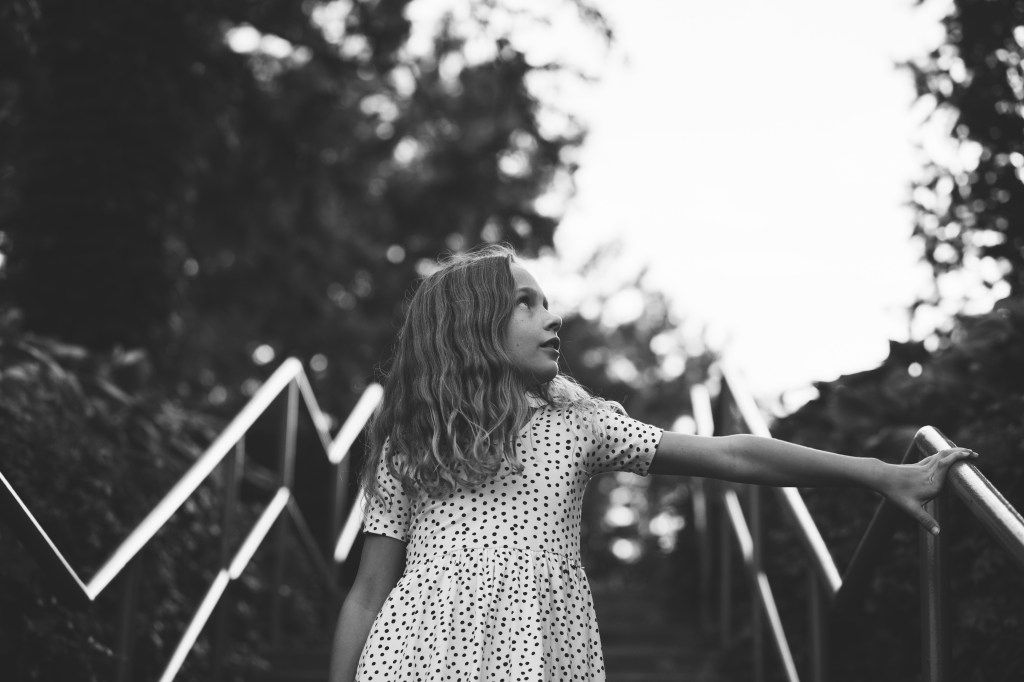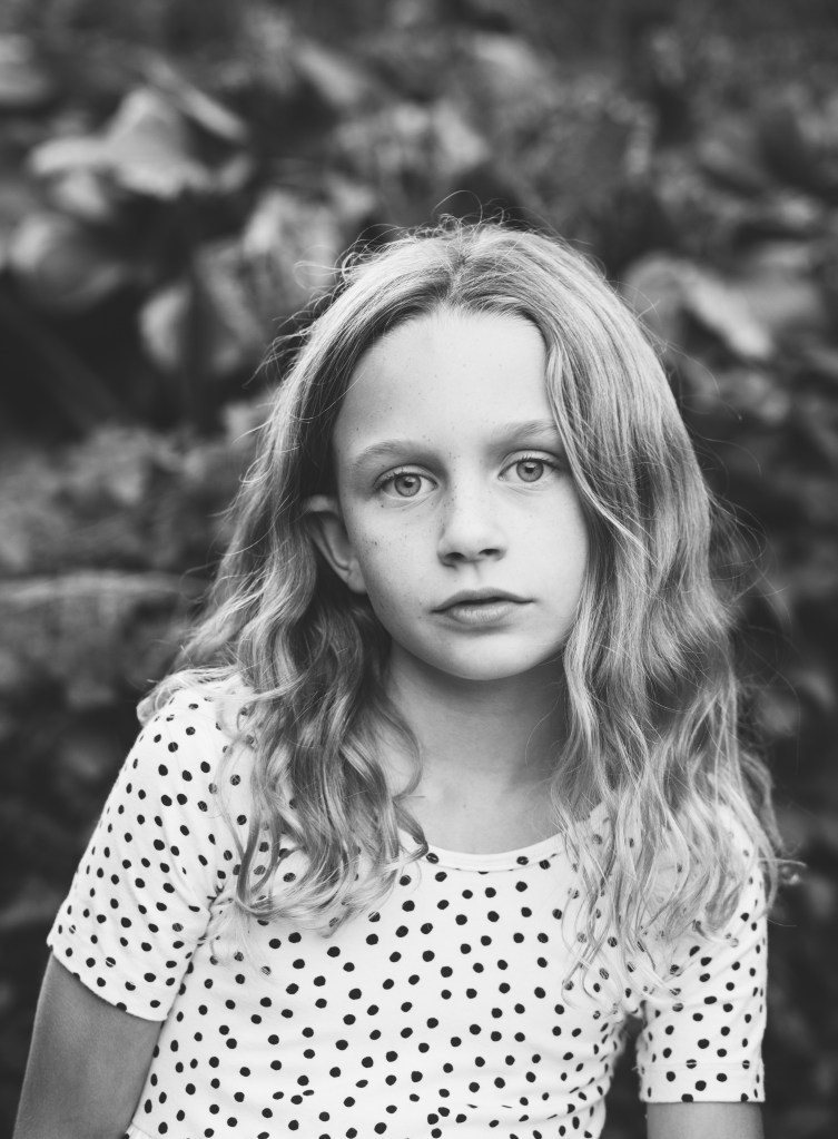Lately we’ve been talking about doing some pictures for her upcoming birthday, we didn’t do any last year, so this year it had to happen. We usually do them a little before her birthday, because November gets cold! She requested this year that we do them in the same garden where I took her to do her 3 year photos. Kolton was at baseball practice, so we snuck off after dinner and got a few photos, Sawyer was a willing photobomber 🙂